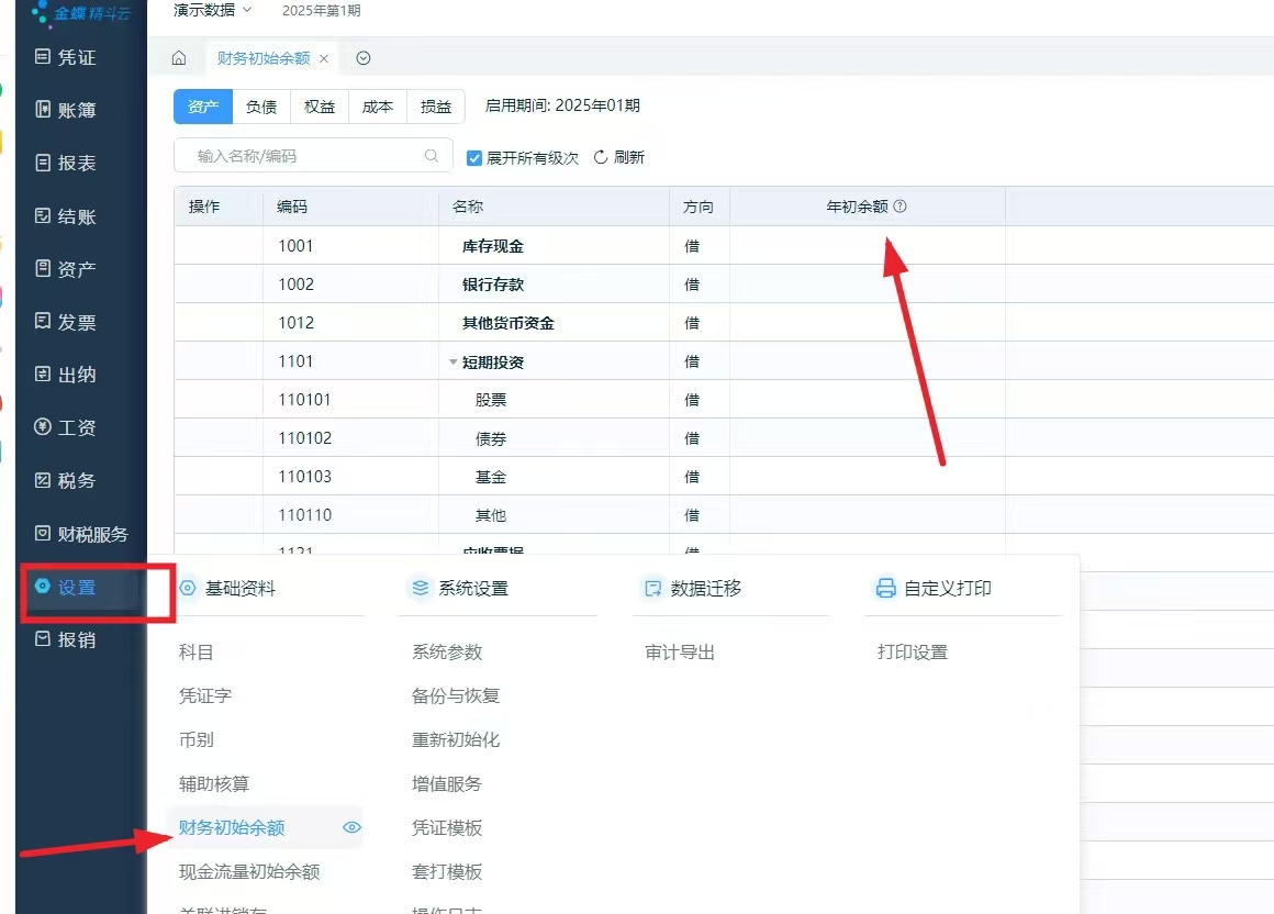 2.录入期初余额。