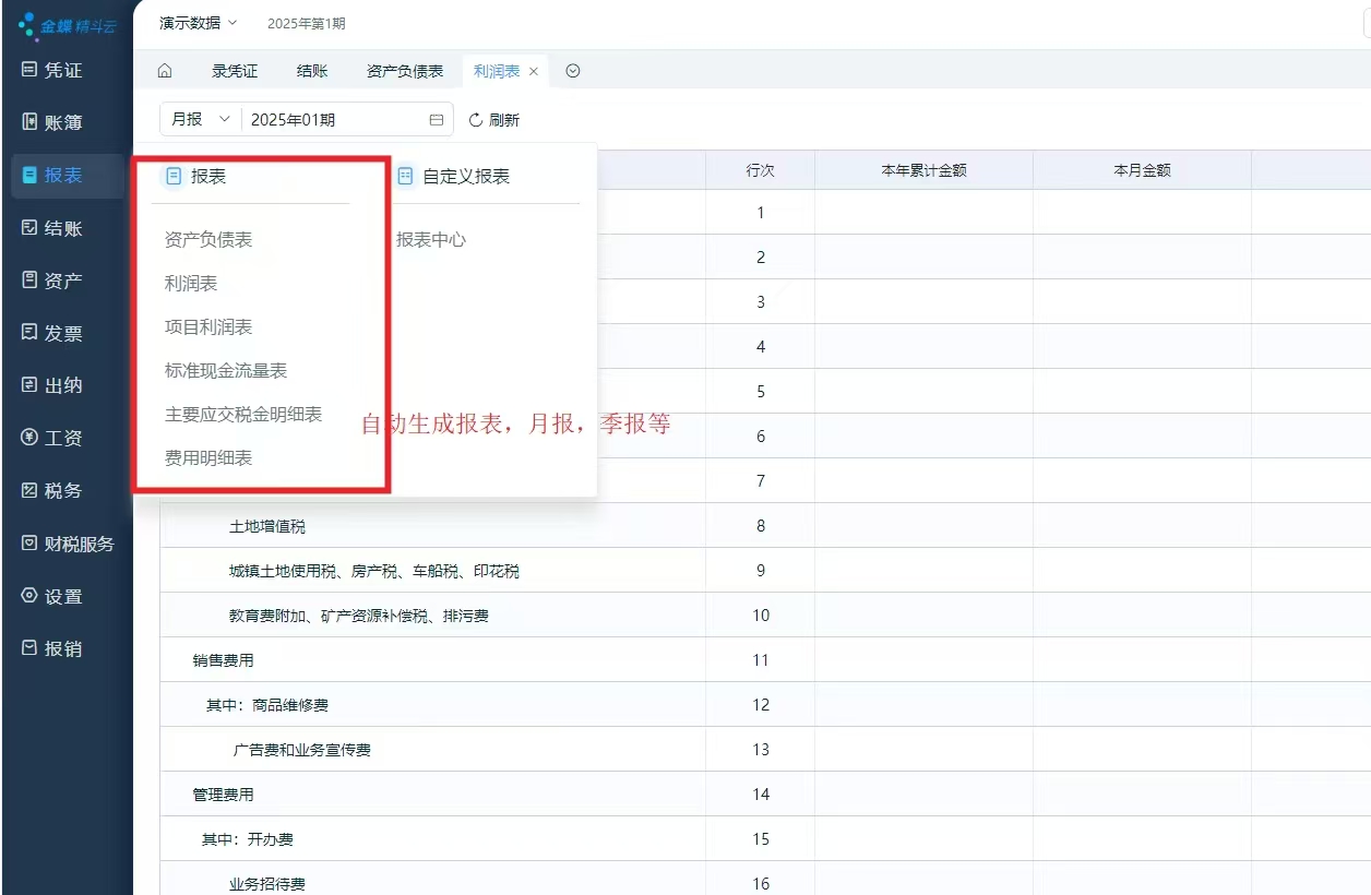 4.自动结转-损益结账。(用户可设置不用审核,记账。结账和反结账也可跨多个月份批量操作。调整账务比较方便。)