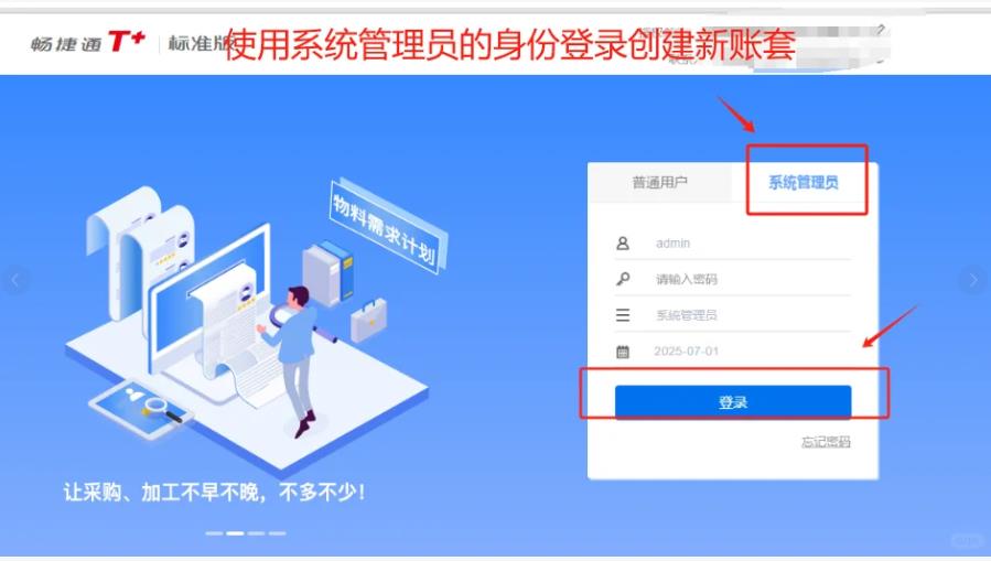 1. admin登录:打开T+,用“admin”(密码空)登录系统管理。