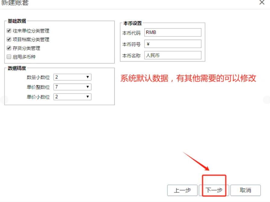 2. 新建账套:点击“账套管理-新建账套”,填账套编码、名称(带*必填),点下一步。