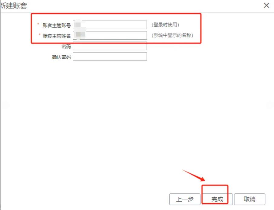 5. 设主管&完成:输入账套主管账号密码,点“完成”即可。