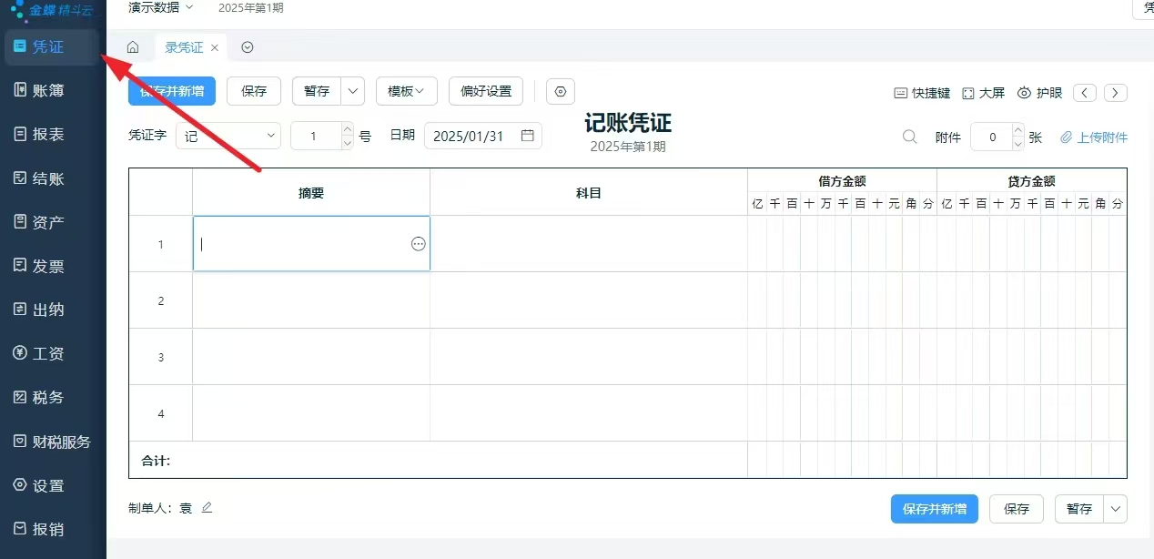 3.录入凭证。